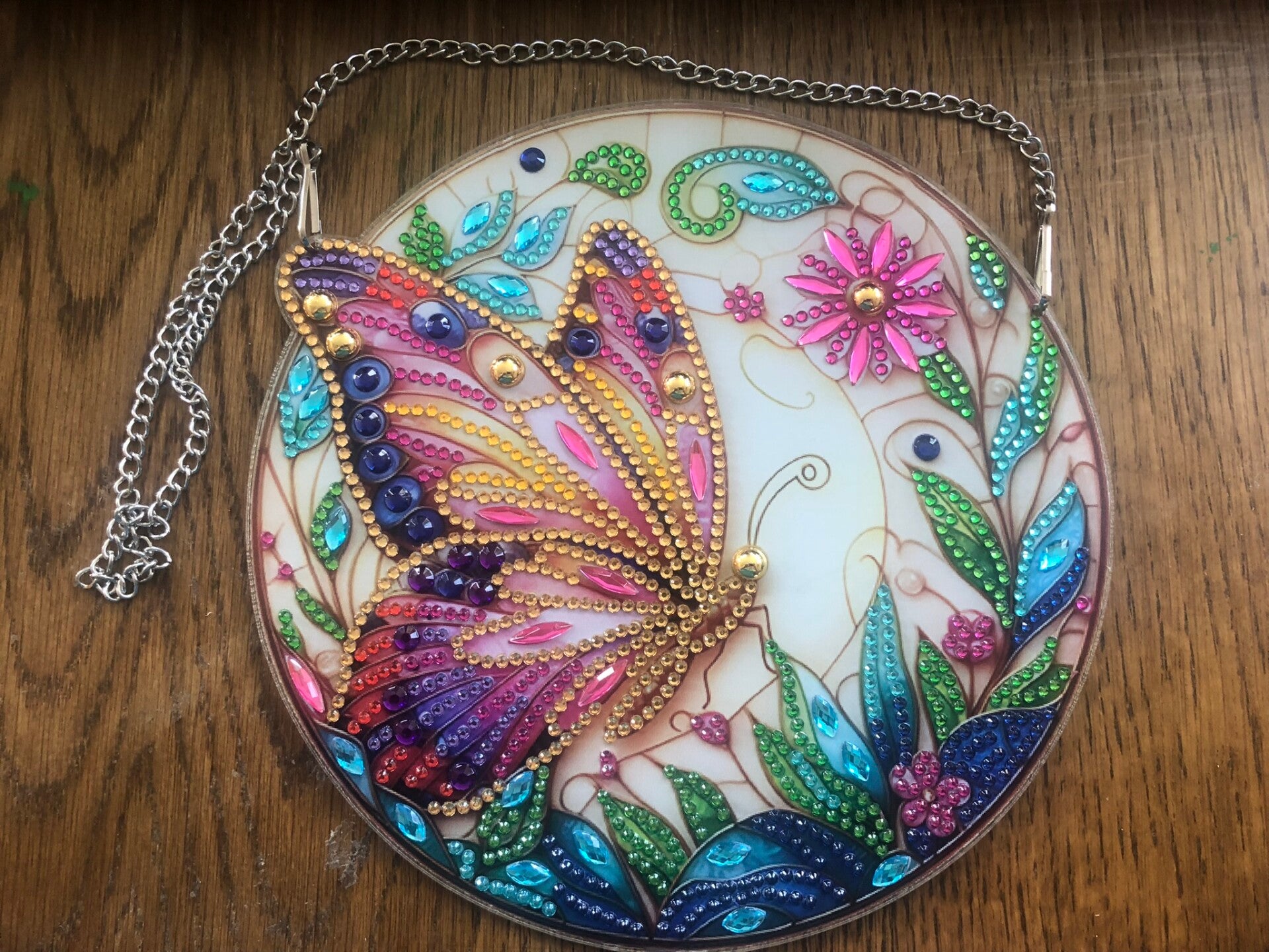 Fensterbild Schmetterling rosa mit Blumen