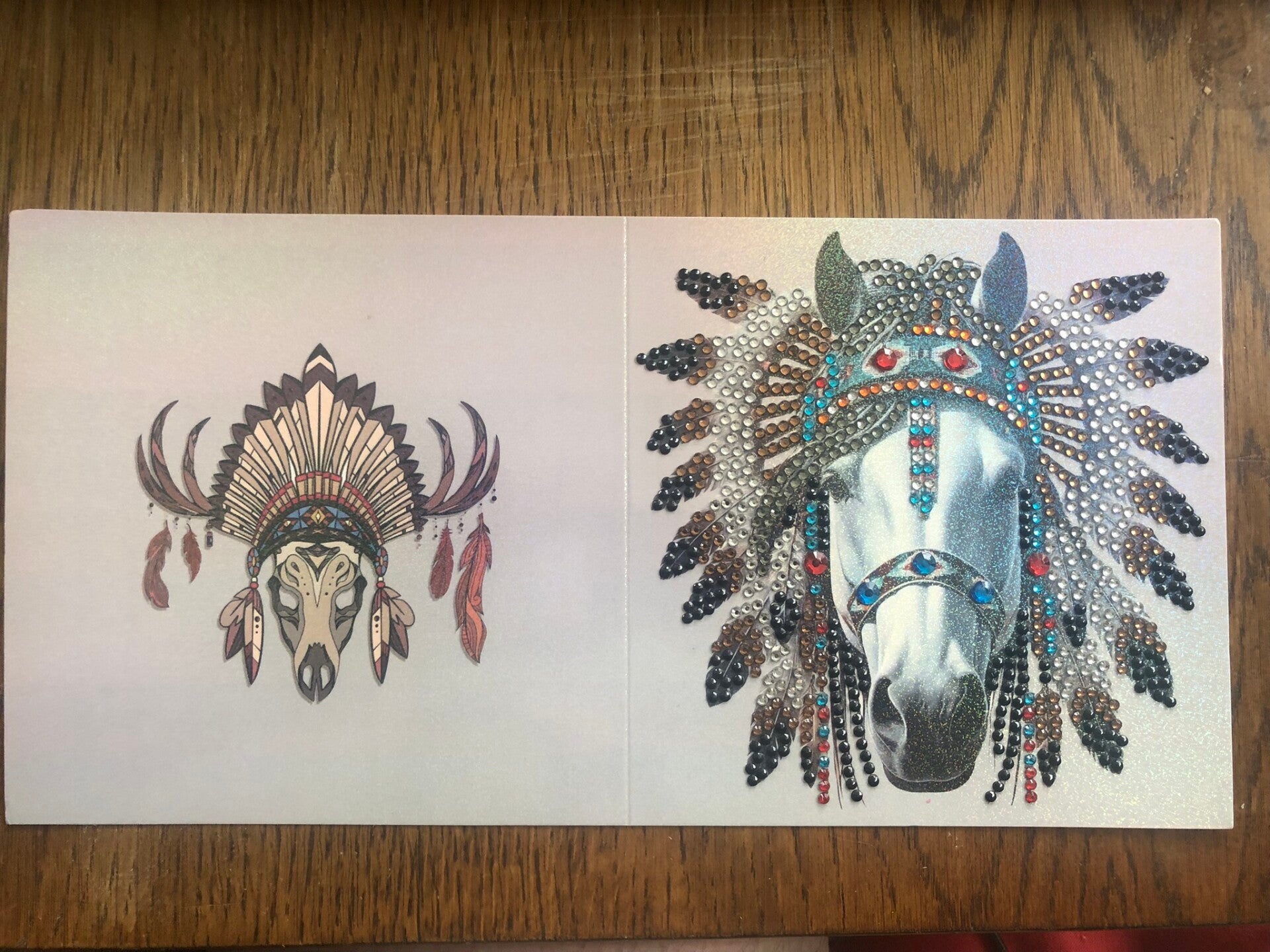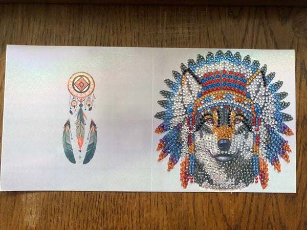 Grußkarten Indianer Pferde und Wölfe